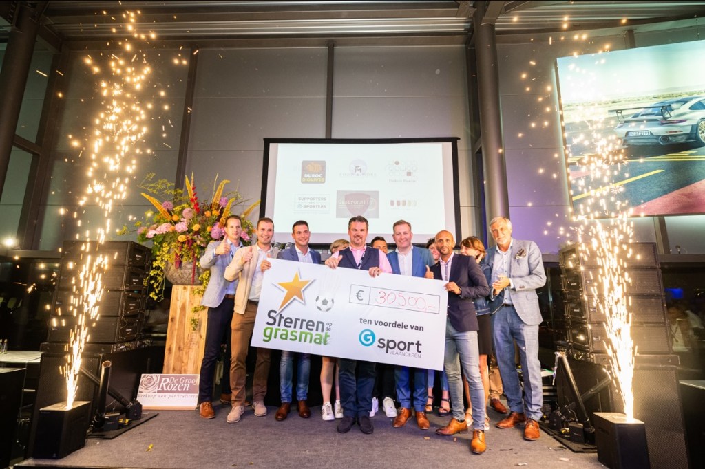 Op het avondevent bij Porsche Centre Mechelen reikten de organisatoren de cheque uit aan Nicole Bossaerts van G-Sport Vlaanderen. Daarnaast steunt Sterren op de Grasmat 2019 ook G-team KV Mechelen, G-ploeg Racing Mechelen, Amp Football Belgium, Anvasport en Studio Borgerstein.
