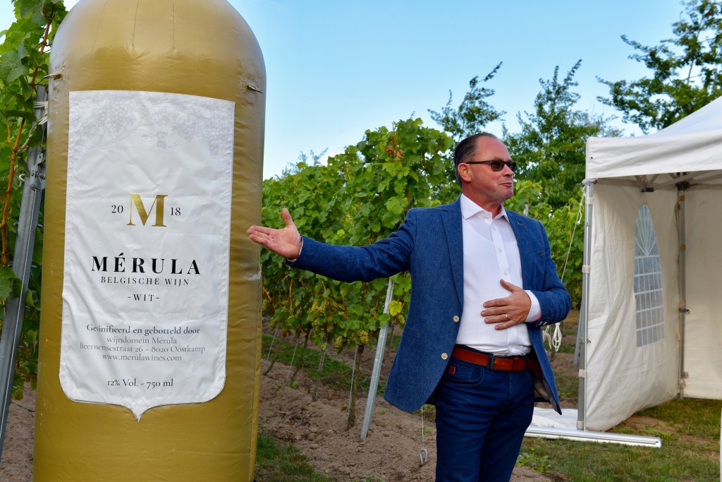 Vorig jaar kreeg de Houtlands wit 2017 van de Oostkampse wijnbouwer Marino Moenaert de prestigieuze gouden medaille tijdens de wedstrijd van de Belgische wijnen van de Vlaamse Vereniging voor Sommeliers. Gisteren stelde hij – tussen de wijnranken – zijn wijnen van het oogstjaar 2018 voor onder de nieuwe naam Mérula, een verwijzing naar de merel, het symbool van de gemeente Oostkamp.