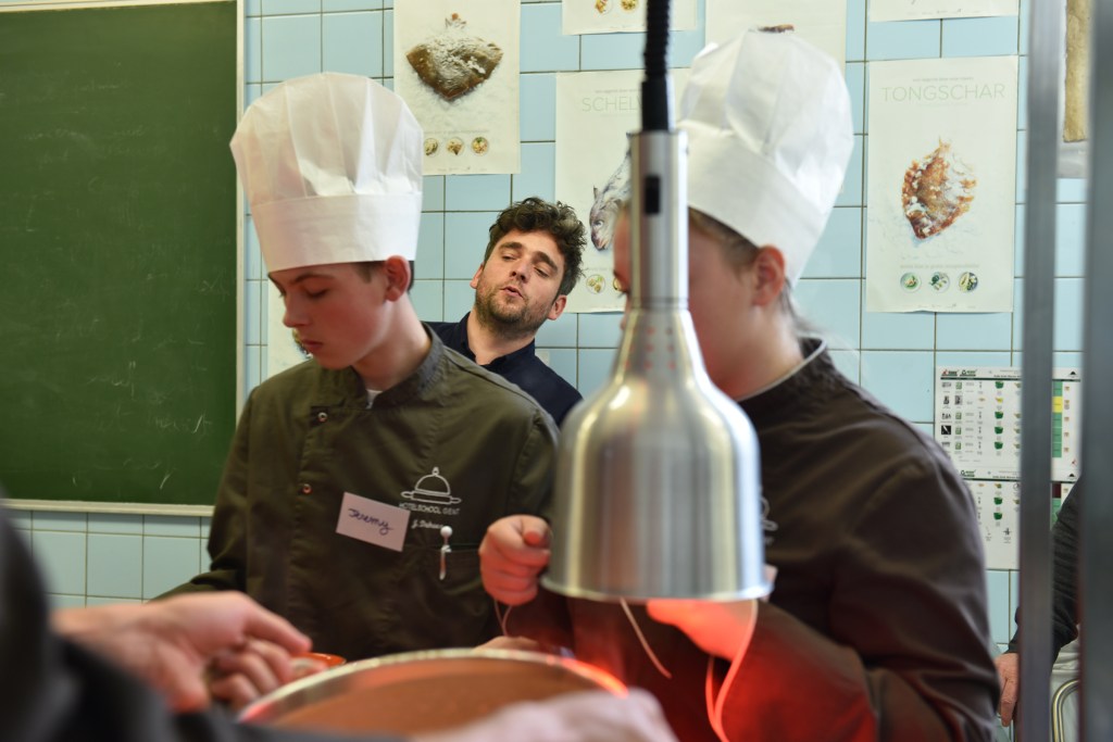 In Hotelschool Gent, gastheer voor de kookdemonstratie en de lancering, leren leerlingen ook om ethisch en vegetarisch te koken. Er is ruime aandacht voor vleesvervangers en plantaardige gerechten. Tijdens diverse uitstappen bezoeken leerlingen ook plaatselijke producenten, gaande van een aspergehoeve tot een fruitteler. Zoals in alle scholen van de Stad Gent, is ook in Hotelschool Gent donderdag veggiedag en eten de leerlingen op school vegetarisch.