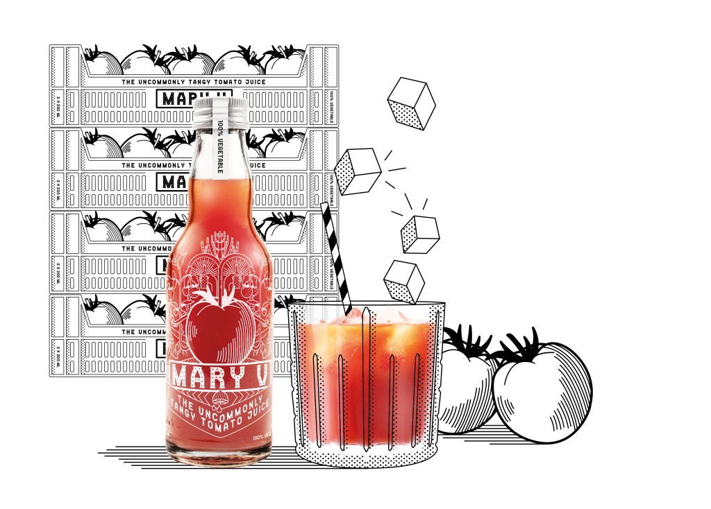Mary V is een culinair geïnspireerd tomatensap van de tweede generatie. Tjokvol umami, met reliëf, tonus en fluweel mondgevoel. Vers sap is daarin het sleutelbegrip. Voor Mary V werkt de sterrenchef van The Jane met écht vers tomatensap en niet met concentraat wat andere “tomatensappen” meestal zwaar op de hand maakt.