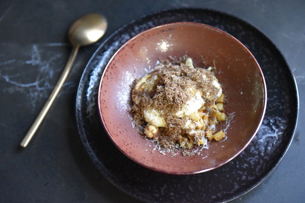 Op de valreep van 2019 een eenvoudig, maar superheerlijk gerechtje van chef Alex Clevers (Vivendum*, Dilsen-Stokkem) dat ook perfect overeind blijft zonder truffel. Alhoewel, vanaf nu is het volop het seizoen van de zwarte truffel ofte de tuber melanosporum, dus waarom even niet uit de bol gaan, veel heb je er niet van nodig voor een smaakexplosie.