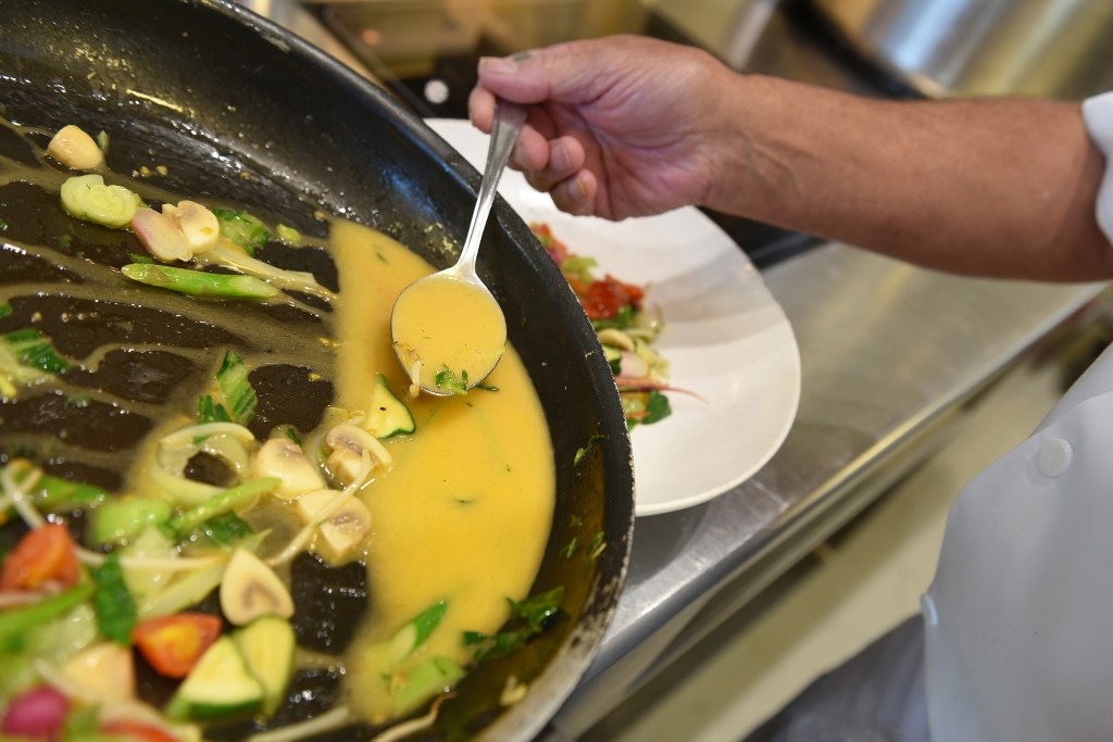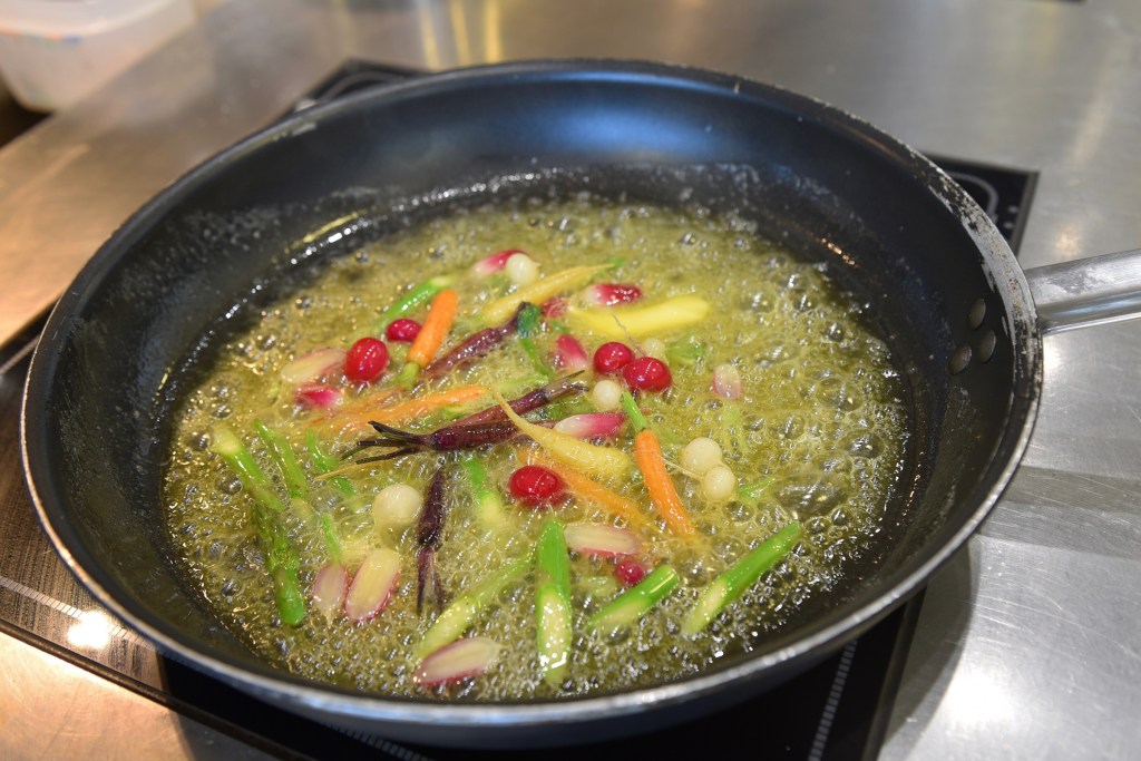 – “Gebruik ik een gewone bakpan voor de groenten, voor de vis werk ik in een antiaanbakpan.”