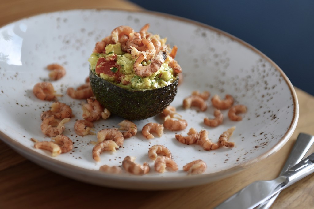 Chef Stijn Bauwens van De Kruidenmolen in Klemskerke (De Haan) is dol op garnalen. Hij serveert de ‘kaviaar’ van de Noordzee niet enkel als onze ‘plat nationale’, tomate crevettes, maar combineert ze ook enthousiast met bloemkool (recept) en… avocado.