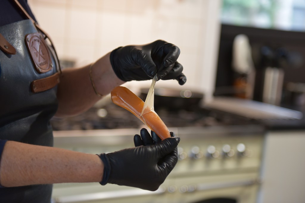 – Ook bottarga is typisch Sardijns. De Sardijnse vissersvrouwen haalden het kuitzakje van de harder uit de vis, zoutten het, persten het tussen planken en lieten het dan aan de lucht drogen. Deze artisanale verwerking is nu overgenomen door een aantal kleine en grote bedrijven die naast de kuit van harder ook die van tonijn en zwaardvis gebruiken. Bottarga is niet goedkoop, niet bij ons en niet in Sardinië, maar je hebt heel weinig nodig voor een geweldige smaakboost!
