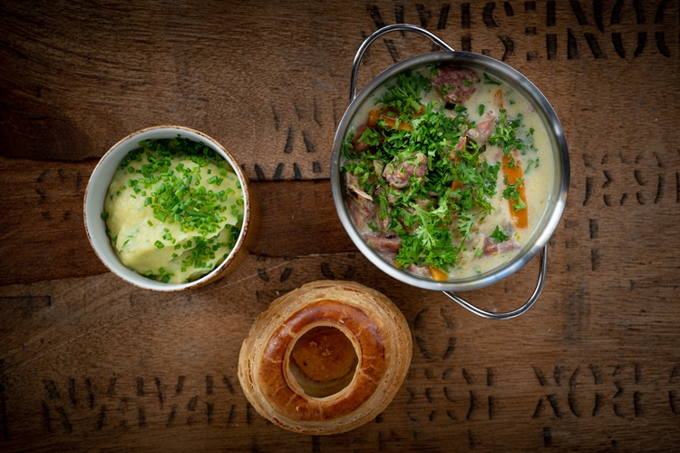 Pieter Lonneville, spekslager en ambachtsman in hart en nieren, opende Tête Pressée tien jaar geleden samen met zijn echtgenote Lien. Met het hybride karakter van eetwinkel en ruime toog vol zelf bereide gerechten naast een restaurant met open keuken was hij zijn tijd vooruit. Ook als één van de eerste voorvechters van het het veld tot vorkprincipe liep hij meteen in het oog. Bij broer en boer Bart laat hij volgens zijn principes runderen kweken die hij zelf volledig versnijdt. “Als erkend spekslager mag ik levend vee kopen dat ik verder helemaal uitbeen en verwerk in mijn atelier,” aldus Pieter. “Vandaar dat de naamsverandering van onze zaak beter aansluit bij de realiteit. Ik voel me evenveel ambachtsman als chef en wil onze klanten in de winkel of het restaurant kunnen aantonen wat de oorsprong is van mijn ingrediënten. Mijn varkens komen bijvoorbeeld van bij topkweker Alexander Vermeulen die voor mij een gemengd Duroc-Berkshire ras kweekt en op 120 kilo slacht.”