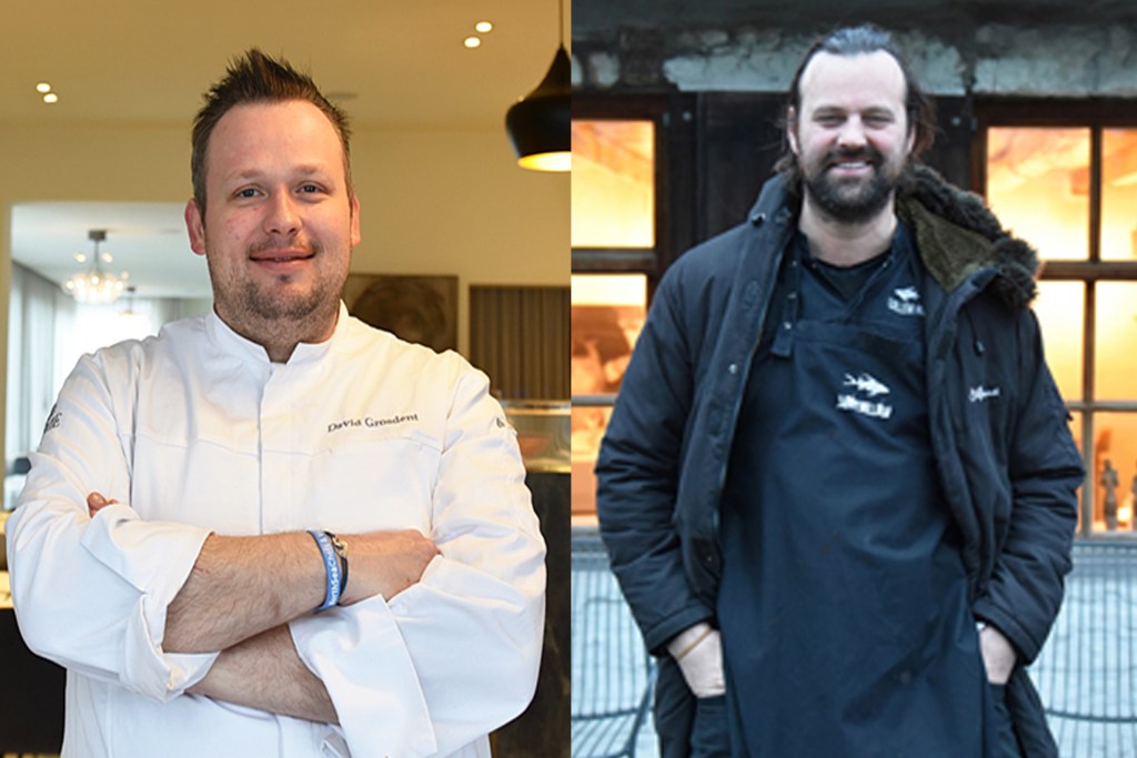 In Vlaanderen krijgen vier restaurants deze mooie eerste groene ster: Filip Claeys (links) van De Jonkman (Brugge) en iniatiefnemer van de Northseachefs, Seppe Nobels van Graanmarkt 13, Kris De Roy van Hofke van Bazel en Vilhjalmur Sigurdarson (rechts) van Souvenir (Gent). In Brussel gaat de eerste groene ster naar Nicolas Decloedt, chef van Humus en Hortense.