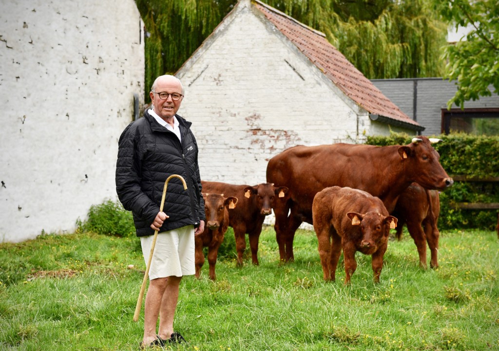 Het is een bewolkte morgen als we door de velden naar de boerderij van Raymond Dierendonck rijden. Een lucht die een prima omkadering vormt voor de vlakke weiden tussen De Panne en Veurne. Als we de oprijlaan oprijden, komen enkele prachtige roodbruine koeien nieuwsgierig kijken achter de omheining. Ze zijn van het West-Vlaams rood runderras. Zonder de passie, vakkennis en liefde voor het terroir van Raymond en Hendrik Dierendonck, vader en zoon, beenhouwers uit Sint-Idesbald, was dit prachtige runderras ongetwijfeld van de aardbol verdwenen.