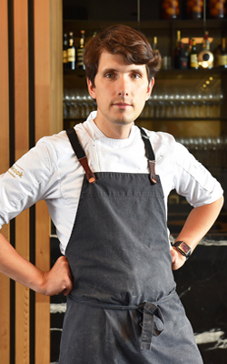 – Gegratineerde rode poon met gestoofde spitskool, gemarineerde groene asperges en kerriesaus